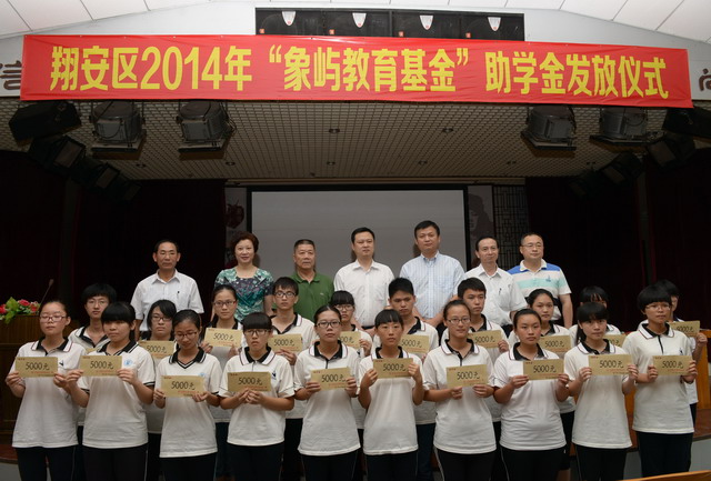 8月22日上午,翔安區(qū)2014年“象嶼集團(tuán)教育基金”助學(xué)金發(fā)放儀式在翔安一中高中部舉行,此次共有來自翔安一中和內(nèi)厝中學(xué)的85位今年考上大學(xué)的困難學(xué)生受到象嶼集團(tuán)資助,每人得到助學(xué)金5000元。翔安區(qū)政府副區(qū)長(zhǎng)林奕田、象嶼集團(tuán)黨委副書記邵蕰默、翔安區(qū)教育局、翔安區(qū)教育基金會(huì)領(lǐng)導(dǎo)出席儀式并為學(xué)生頒發(fā)助學(xué)金。