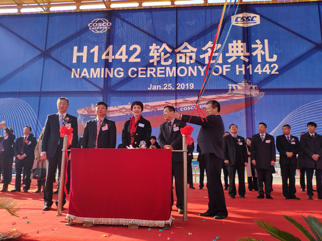 同時出席儀式的還有中遠(yuǎn)海運重工總經(jīng)理梁巖峰、副總經(jīng)理趙增山,揚州中遠(yuǎn)海運重工總經(jīng)理王志峰、黨委書記張凱藝,中遠(yuǎn)海運散運本部副總經(jīng)理陳延、副總經(jīng)理黃志強(qiáng);中國礦運總經(jīng)理張福光,外高橋造船有限公司總經(jīng)理陳剛,LR船級社北亞地區(qū)總經(jīng)Mr.Darley、大中華區(qū)總經(jīng)理薛茂根,CCS船級社江蘇分社總經(jīng)理張凱等領(lǐng)導(dǎo)。