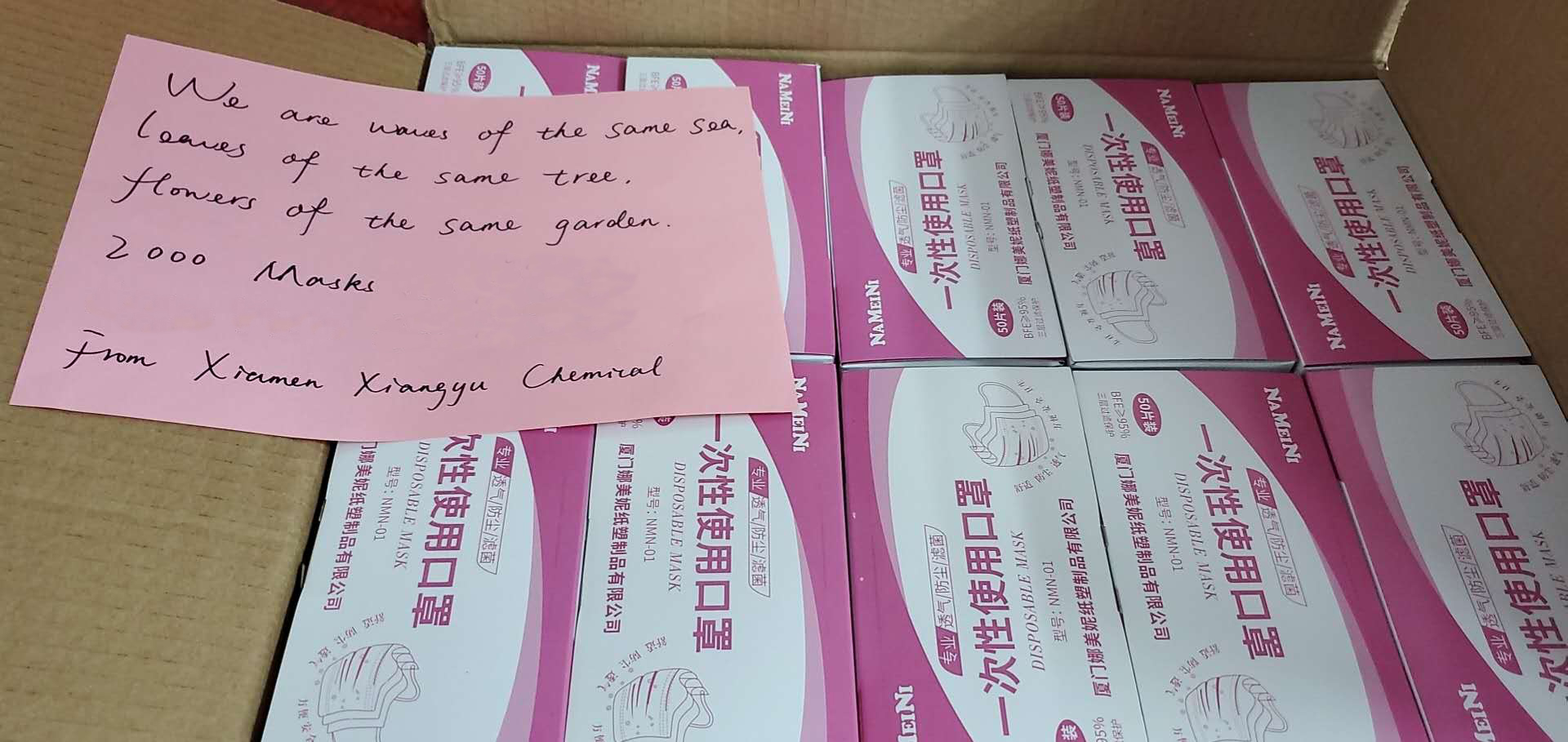 在2月10日象嶼復(fù)工的第一天,象嶼股份旗下公司象嶼資源便收到了開工第一禮——來自韓國LG INTERNATIONAL CORP.的近500個(gè)口罩,這份情誼象嶼人銘記于心。3月20日,在了解到韓國疫情日益嚴(yán)峻之后,象嶼資源心懷感恩,多方聯(lián)系協(xié)調(diào),以最快的速度向韓國LG INTERNATIONAL CORP.寄去了5000個(gè)口罩,以“象嶼溫度”溫暖友商,馳援海外抗疫。