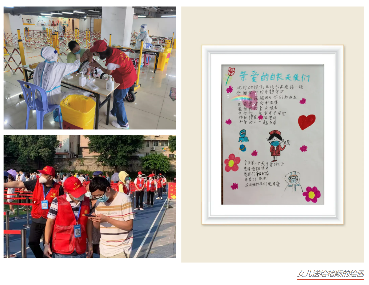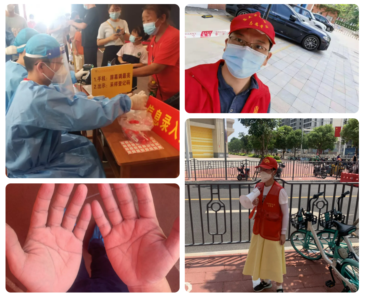 來自象嶼速傳黨辦的禇穎與她愛人更是雙方齊上陣,兩人錯開時間進行志愿服務,一人在外幫助市民進行核酸檢測,一人在家照顧孩子,既顧好“小家”也顧著“大家”。當她完成志愿者任務,給女兒看了自己的照片后,女兒忽閃忽閃的大眼睛直直地看著媽媽說:“媽媽,真不容易,應該很熱吧!”夫妻二人用親身經(jīng)歷給孩子樹立了一個好榜樣!