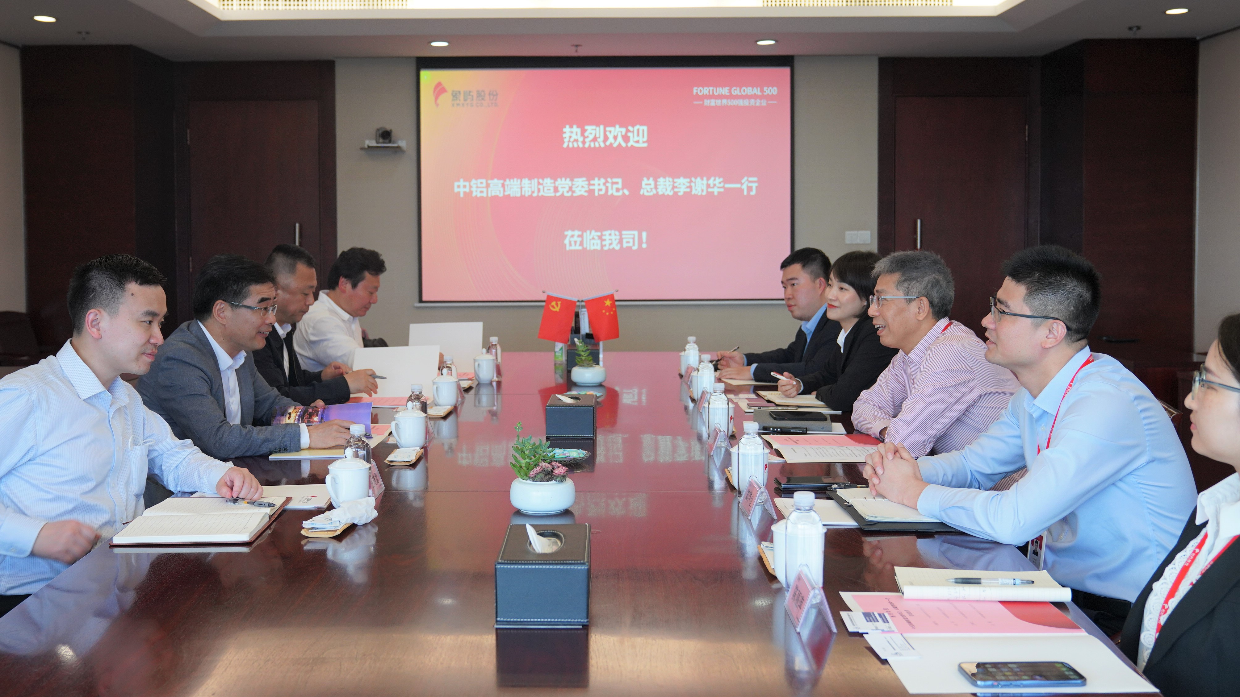 中鋁高端制造股份有限公司總裁助理曲明、綜合管理部總經(jīng)理王琦龍,中鋁高端制造供應(yīng)鏈公司副總經(jīng)理宋瑾隨同來訪;象嶼股份運(yùn)營管理副總監(jiān)曹靈,象嶼鋁晟總經(jīng)理助理陳麗萍等陪同接待。