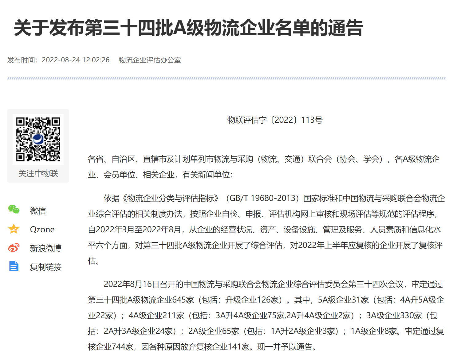 今天,中國(guó)物流與采購(gòu)聯(lián)合會(huì)發(fā)布“全國(guó)第三十四批A級(jí)物流企業(yè)名單”,象嶼股份旗下企業(yè)象道物流集團(tuán)有限公司(以下簡(jiǎn)稱:象道物流)以大宗商品物流可持續(xù)發(fā)展創(chuàng)新模式與實(shí)踐成果,榮膺最高評(píng)級(jí)國(guó)家5A級(jí)綜合服務(wù)型物流企業(yè),成為象嶼股份體系第三家獲此殊榮的企業(yè)。