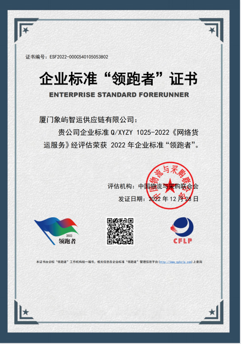 行業(yè)領(lǐng)跑 | 象嶼股份旗下象嶼智運獲評物流服務(wù)領(lǐng)域首批企業(yè)標(biāo)準(zhǔn)“領(lǐng)跑者